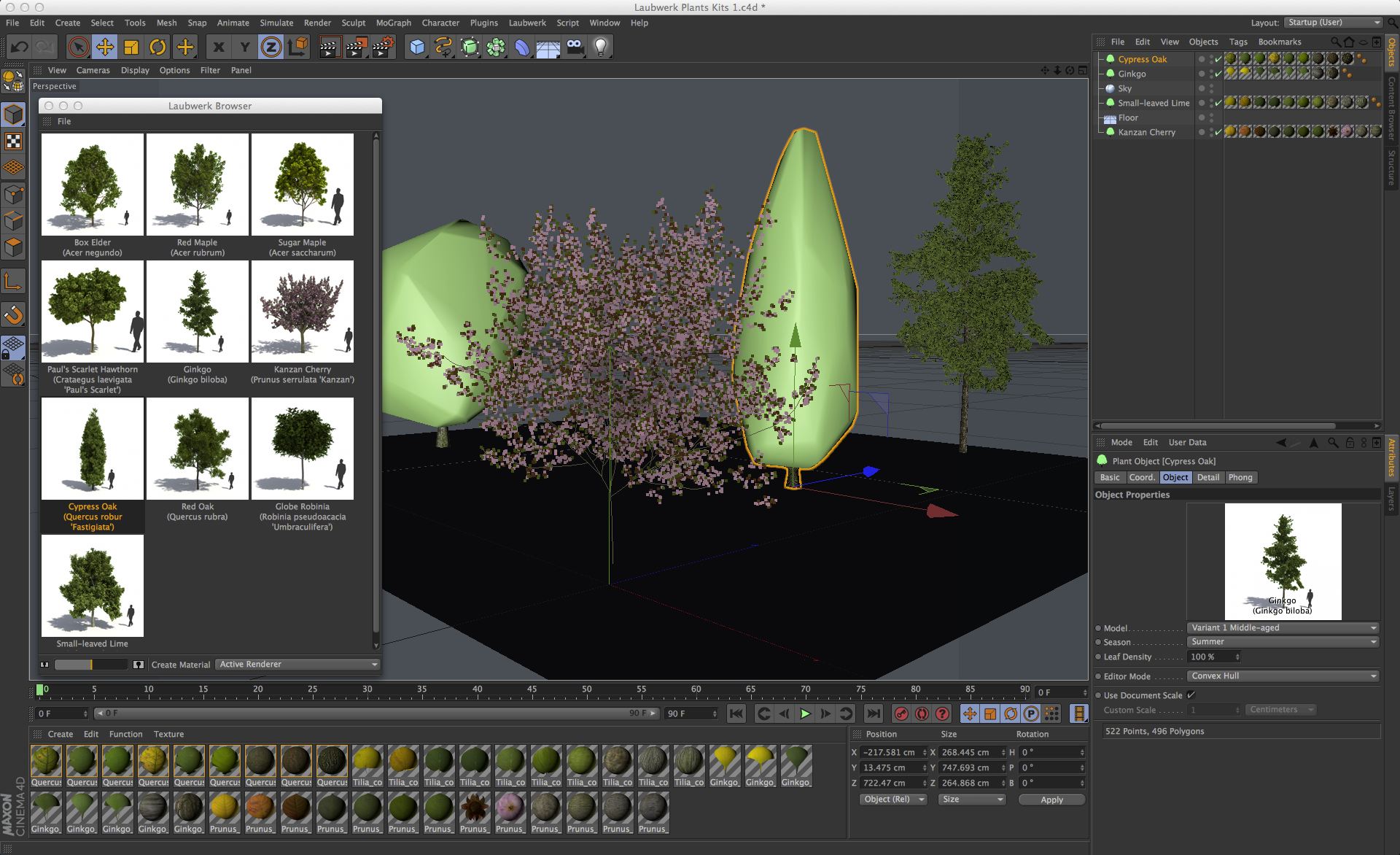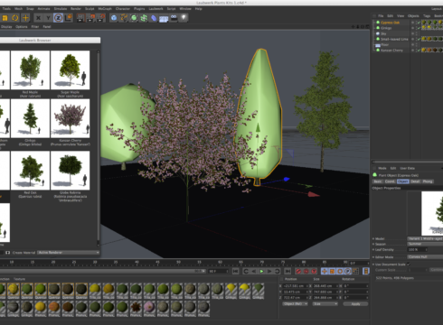 Laubwerk gebruiken is eigenlijk heel eenvoudig: sleep de gewenste plant, struik of boom in de scene en pas vervolgens de parameters vorm, leeftijd, seizoen en detailniveau aan!