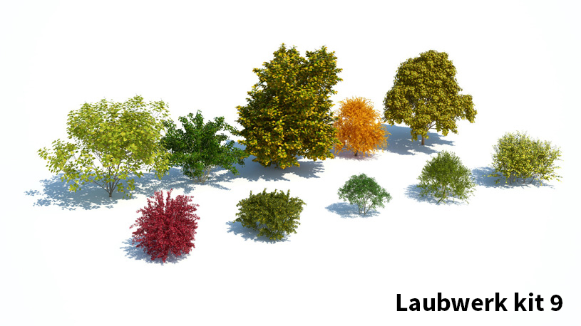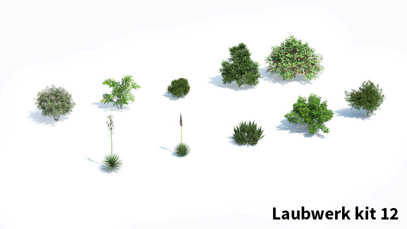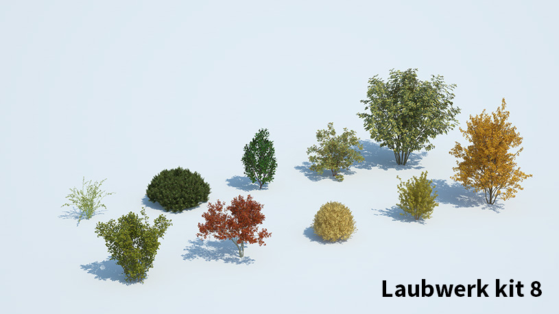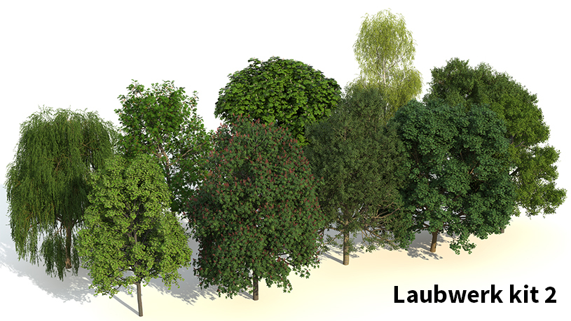Laubwerk is niet zo maar een bibliotheek. Elke kit bevat 10 soorten planten, bomen of struiken met elk 36 verschillende variaties (3 varianten, 3 leeftijden en 4 seizoenen), zodat je eindeloos kunt combineren. In de veelgestelde vragen deel heb ik alle kits met type bomen weergegeven.