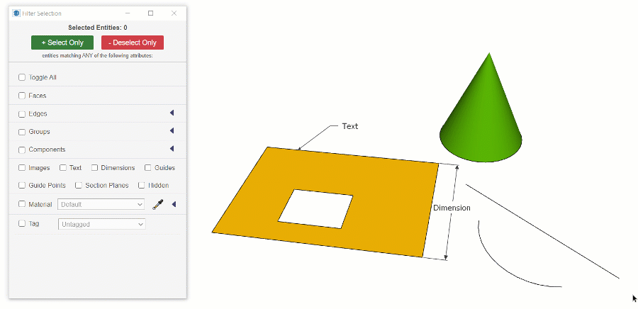 Tags – Verwijder tags direct met de Untag tools. Met één simpele klik kun je  tags verwijderen van groepen, componenten, vlakken en randen.