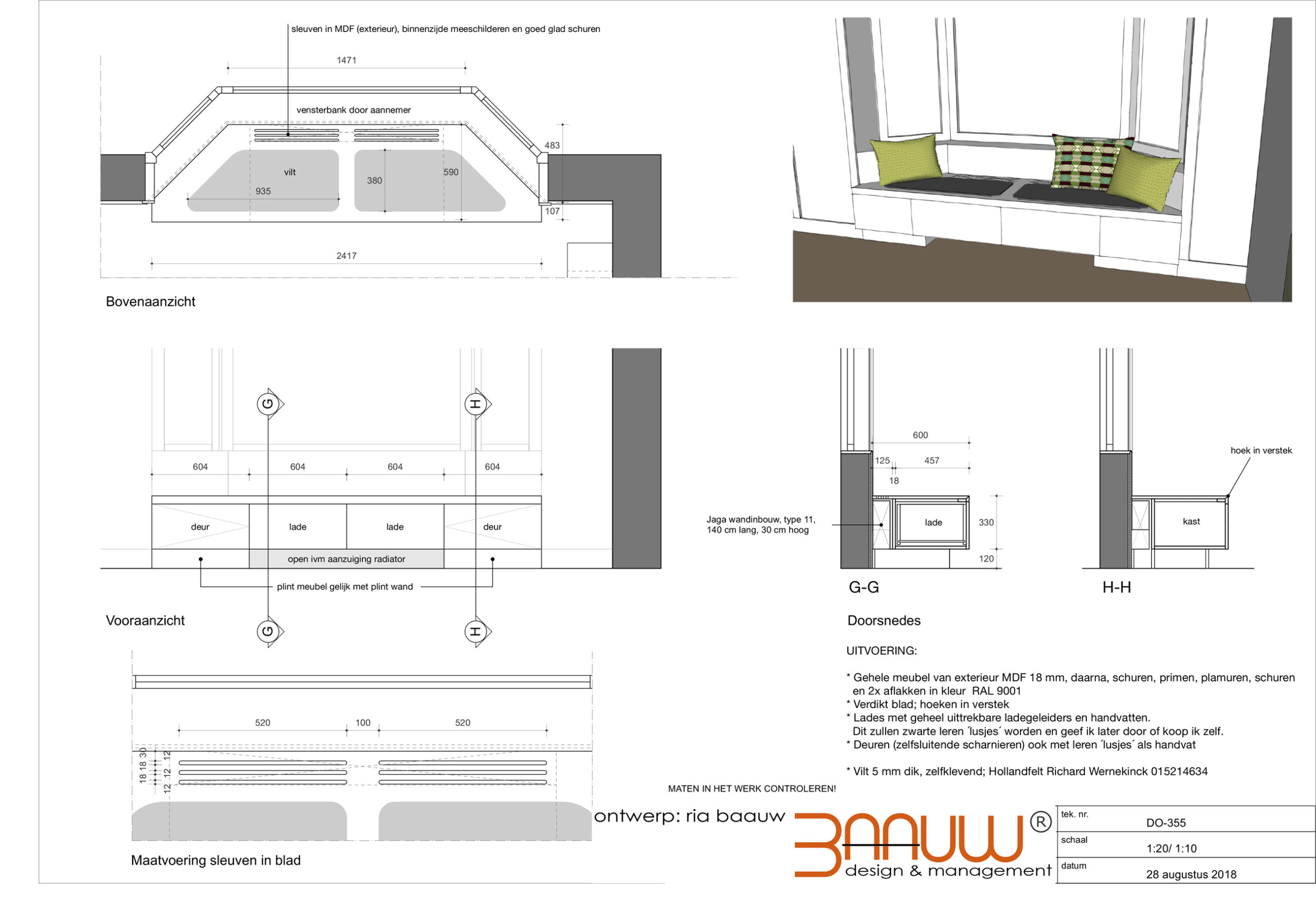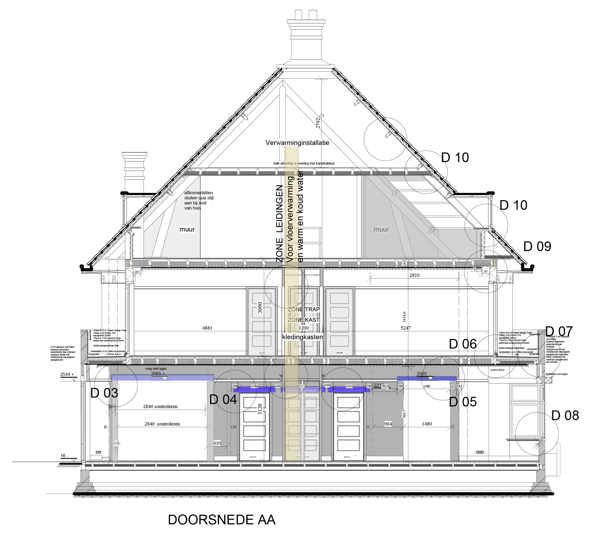 Aanduidings gereedschappen.: Binnenzicht, Snede/zicht, titel tekeningen, detail, stijl aanduidingen.
